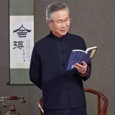 Middle-aged and elderly long sleeve suit male grandfather Tang suit spring summer father linen shirt Chinese coat retro dress