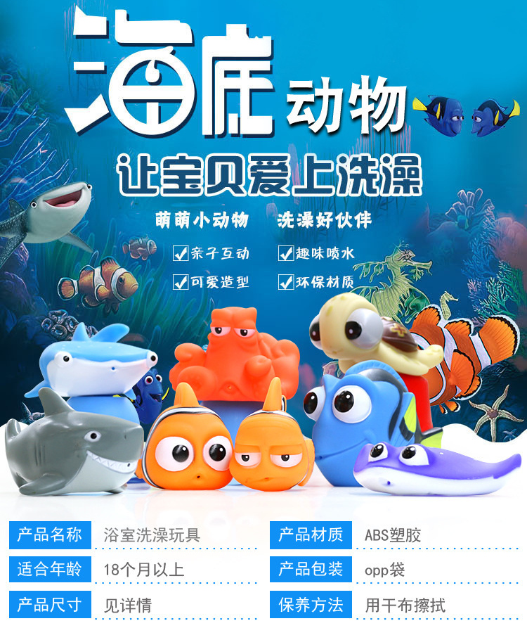 Boys and girls baby bath floating play water toy water spray marine animal doll Dolly Nemo clownfish