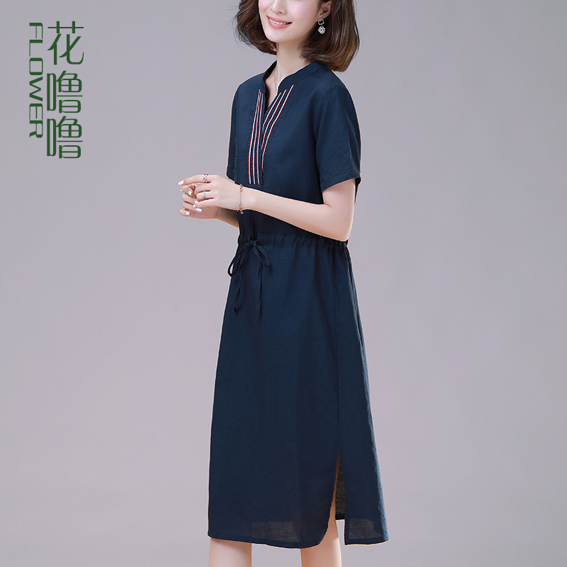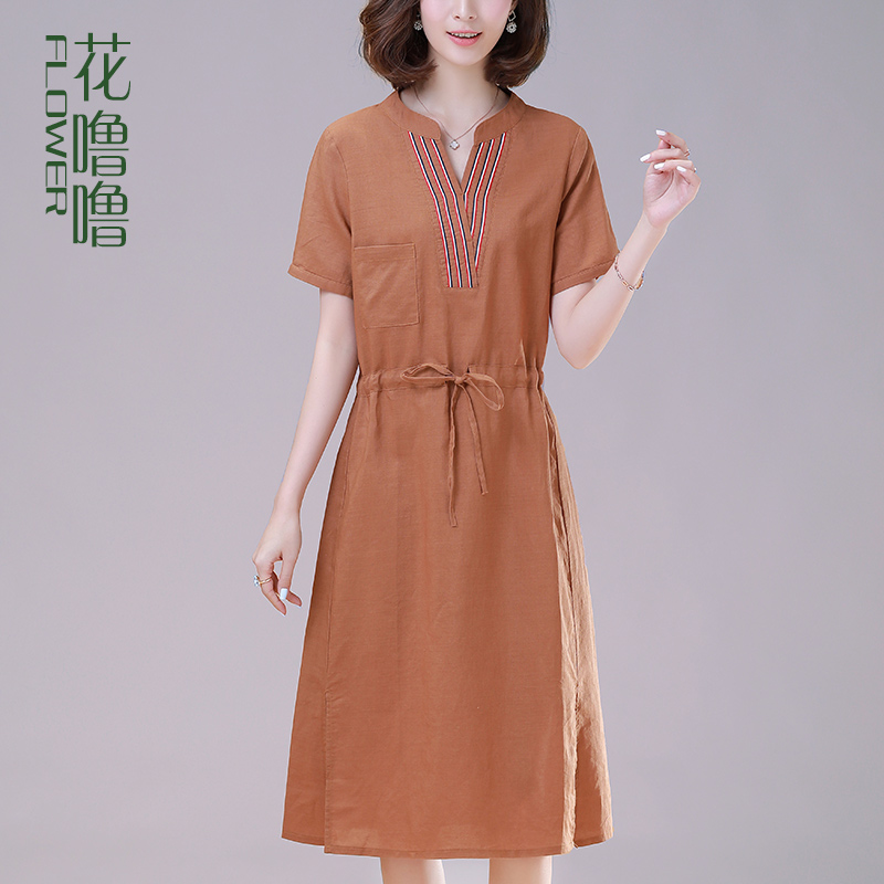 Your lady's cotton numb dress 2022 new summer dress women's temperament Hemp Middle-aged Mother Summer Foreign Dress