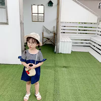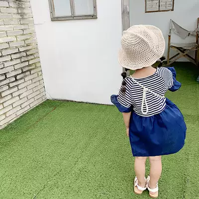 Girls ' clothing 2021 summer new cute princess doll skirt Striped College style short sleeve stitching dress