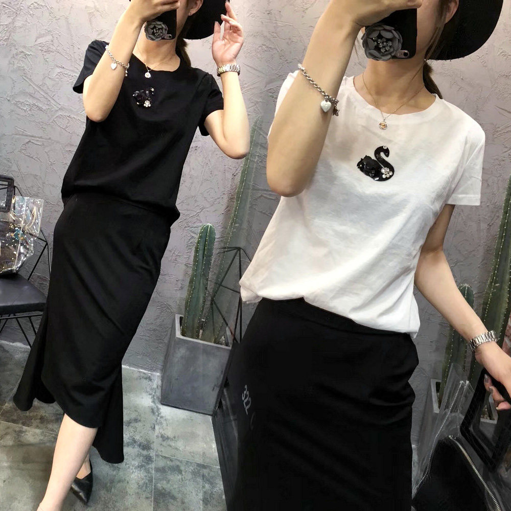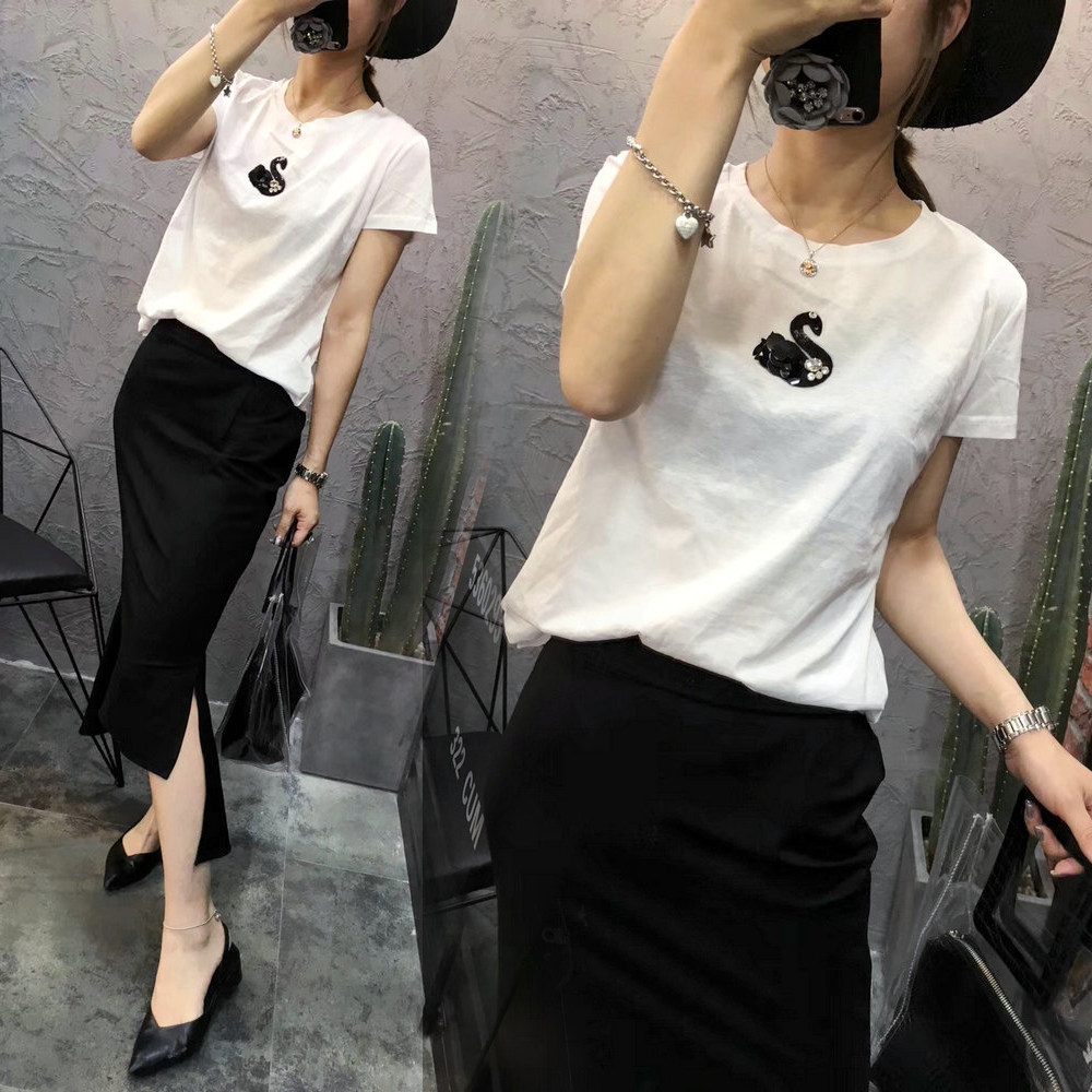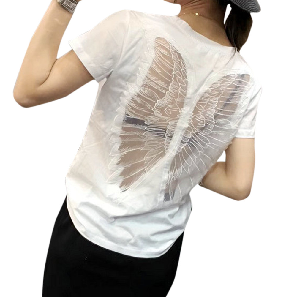 European website net yarn hollow short-sleeved female summer little swan slightly transparent top 2022 new sexy backless t-shirt wings