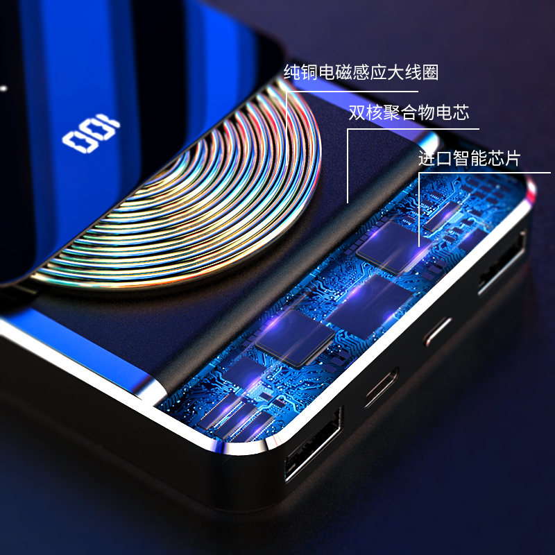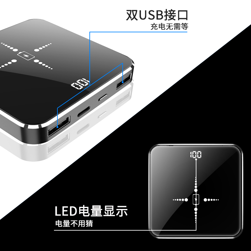 Wireless Mobile Charger 20000 mAh Ultra-thin Small Portable Ultra-capacity Mini Mobile Power Bank Girls Cute Creative Suitable for Xiaomi Apple Huawei 10000 Graphene Flash Charge