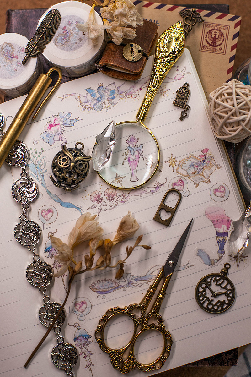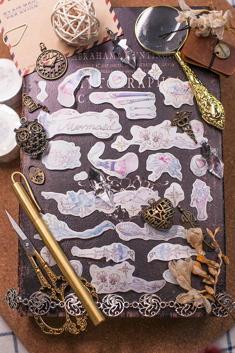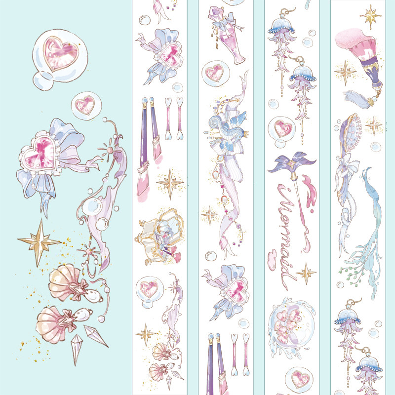 Beautiful dream fairy tale hand account tape Lat Pu Da original material sticker whole roll mermaid makeup box