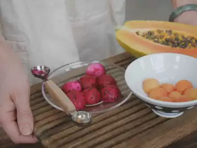 Japanese imported Aizawa workshop wooden handle 304 stainless steel fruit scoop scoop for dessert