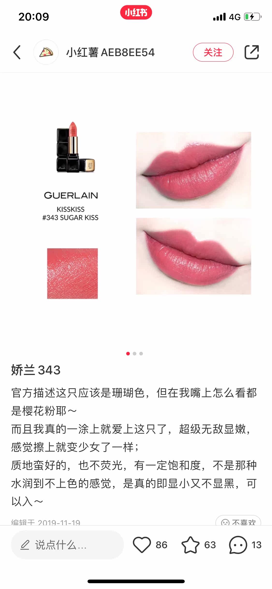 Li Jiaqi recommends Jiao Lan Kiss lipstick 343 Number of water red coral powder Yang Yang Advertisement