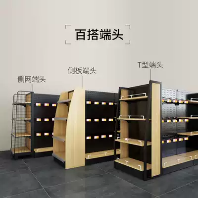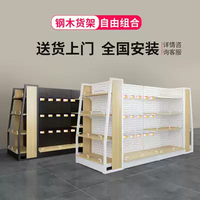 Supermarket steel wood grain shelf display rack Convenience store maternal and child shopping mall small snacks Stationery double-sided end commercial