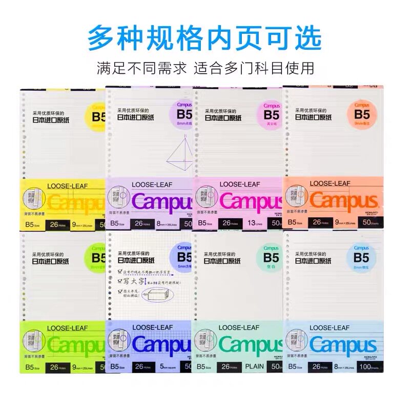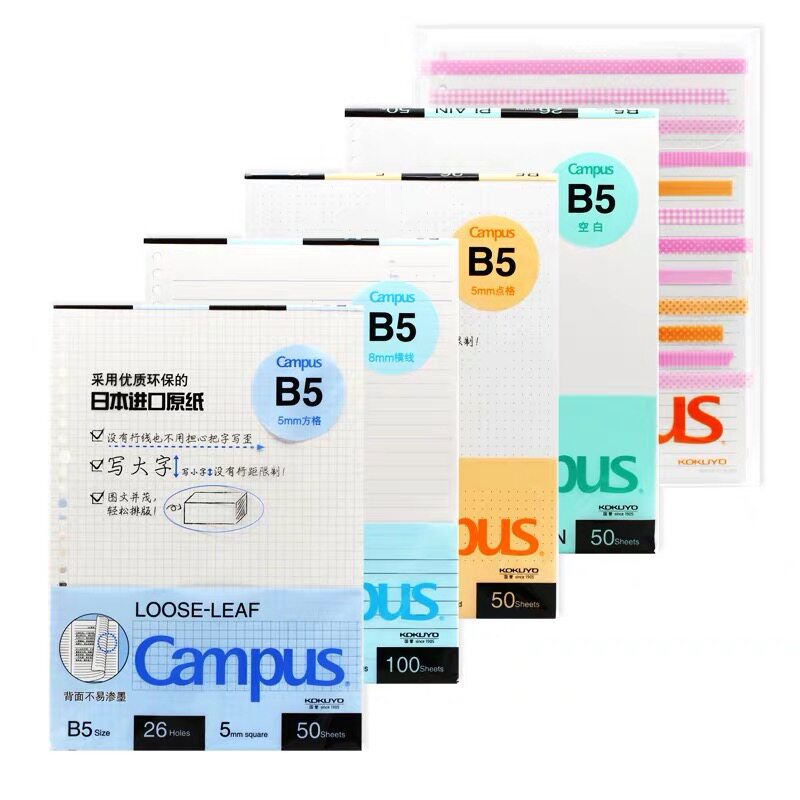 Japan KOKUYO KOKUYO campus loose sheet a5b5a4 loose sheet book for core students horizontal grid blank square grid English dot matrix notebook replacement core 20 holes 26 holes 30 holes