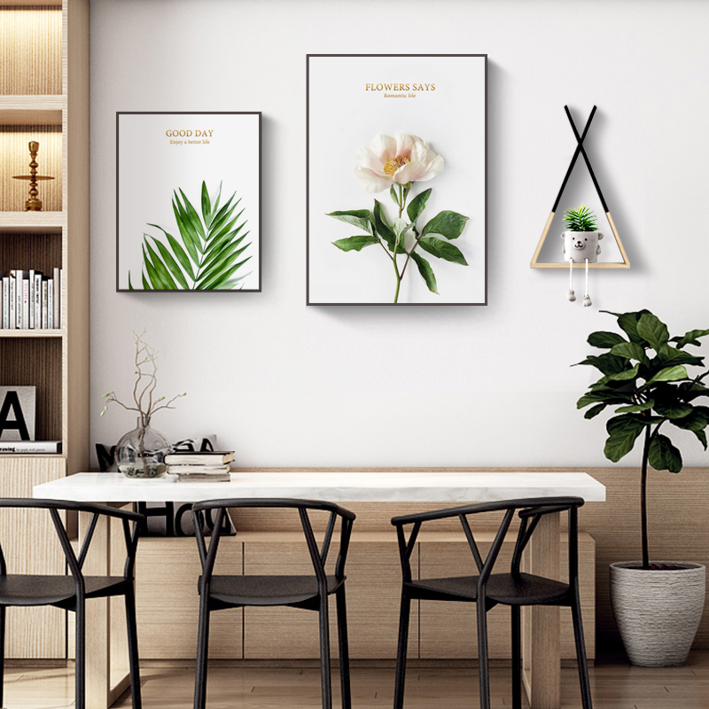 Northern Europe restaurant decoration painting green plants small fresh dining room dining room wall mural modern simple living room combination hanging picture