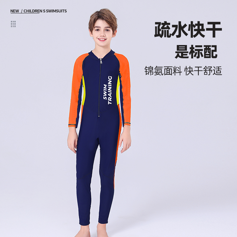Children's swimsuits, boys one-piece diving suits, summer, large children's sun protection, quick-drying long sleeves, trousers suits, teenagers swimsuits