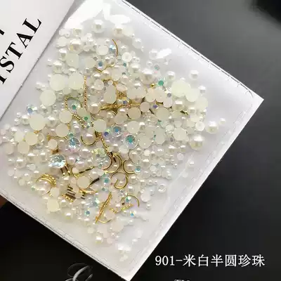 Nail art new flat bottom semi-round pearl shaped water drop arc Pearl Rhinestone metal rivet nail jewelry mixed