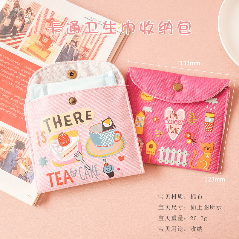 Y Shaft Teenage Girl Hearts Containing Bag Sanitary Cotton Bag Canvas Large Capacity Cute Dark Clothing Portable Aunt Towel Bag M Towel Bag