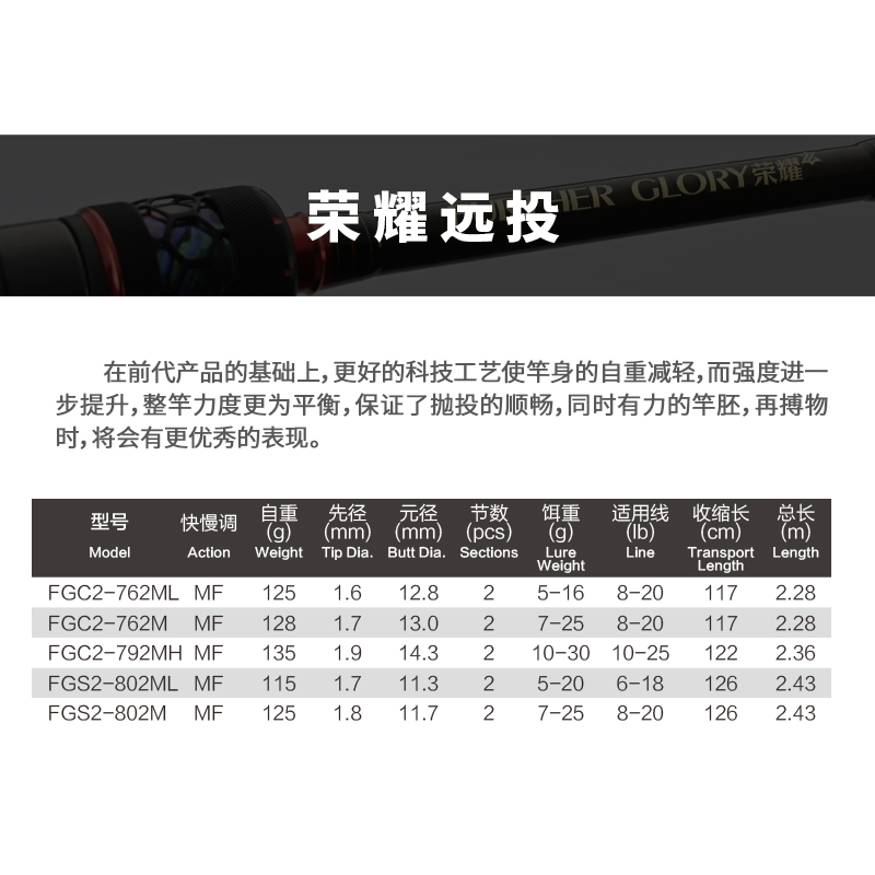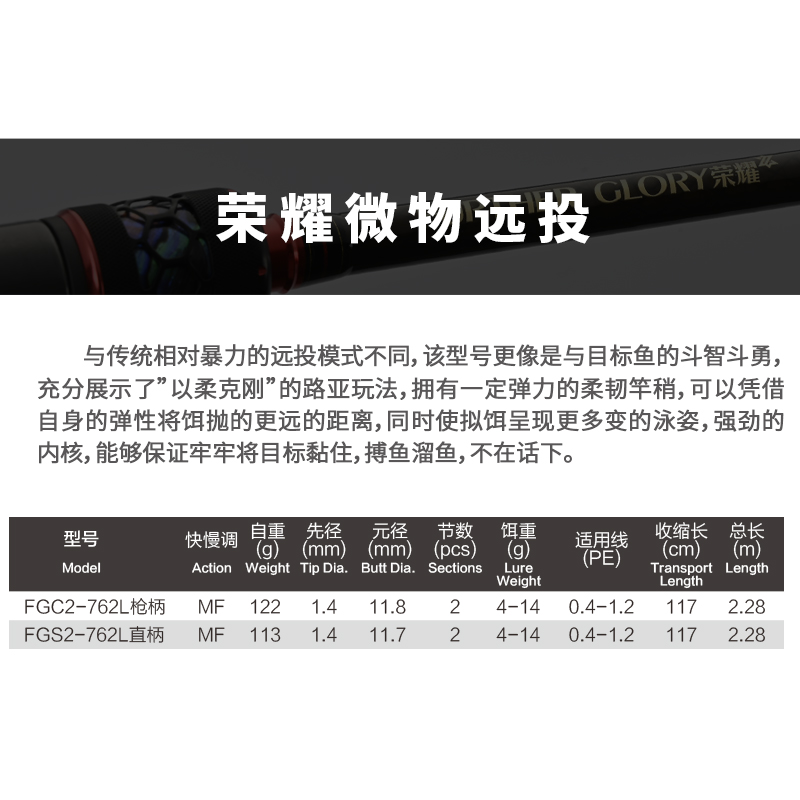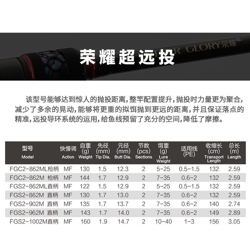 Far throw gun handle 2 28 m in soft 762ML far throw gun handle 2 28 m mid 762M far throw gun handle 2 36 m mid hard 792MH far throw straight handle 2 43 m mid to soft 802