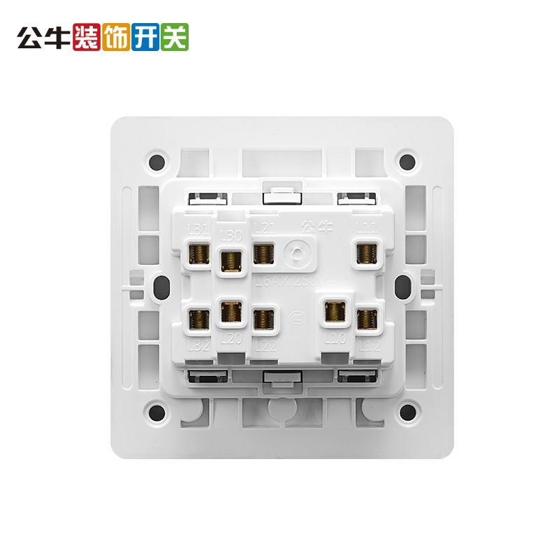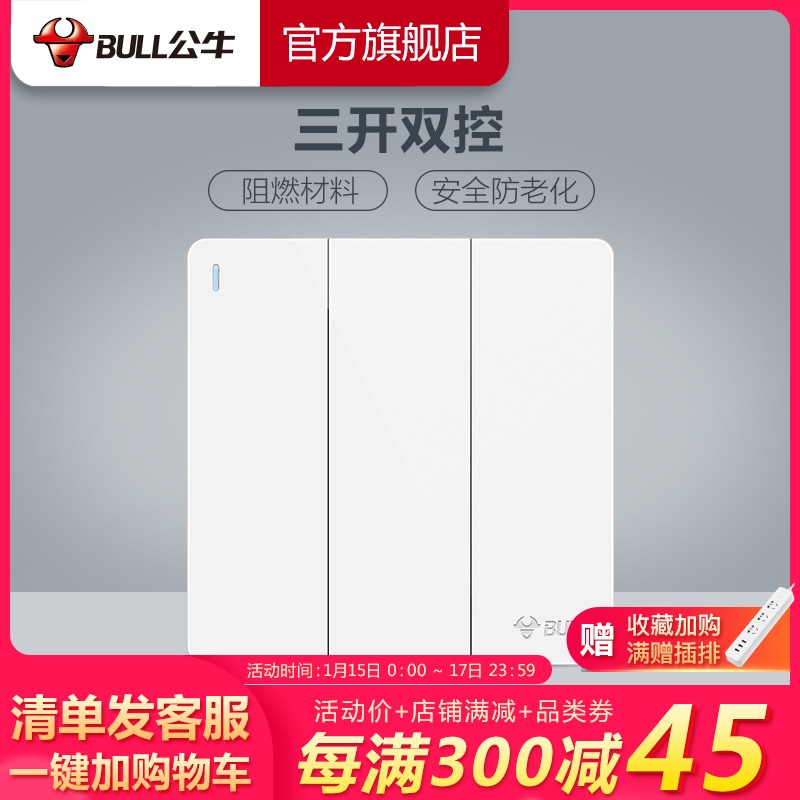 Bull socket flagship switch socket double control switch home 86 type three open double control wall light panel G12 white