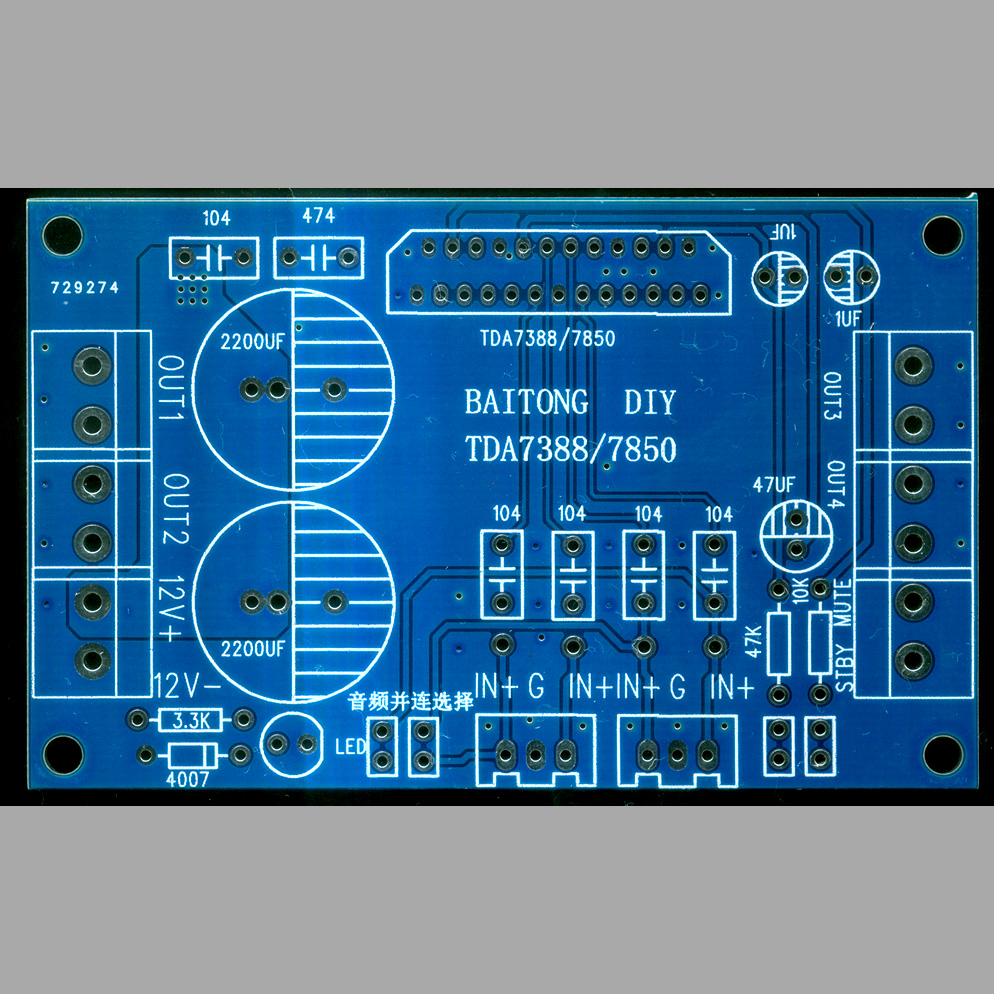 Special TDA7388 7850 power amplifier board 12V car household four-channel power amplifier board empty board parts