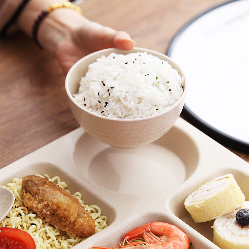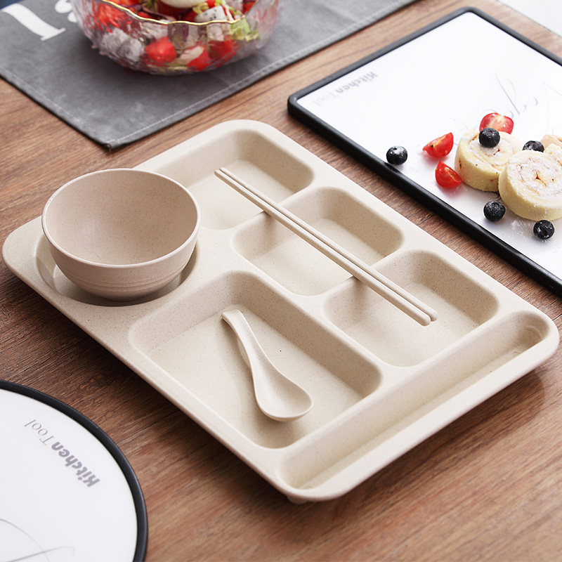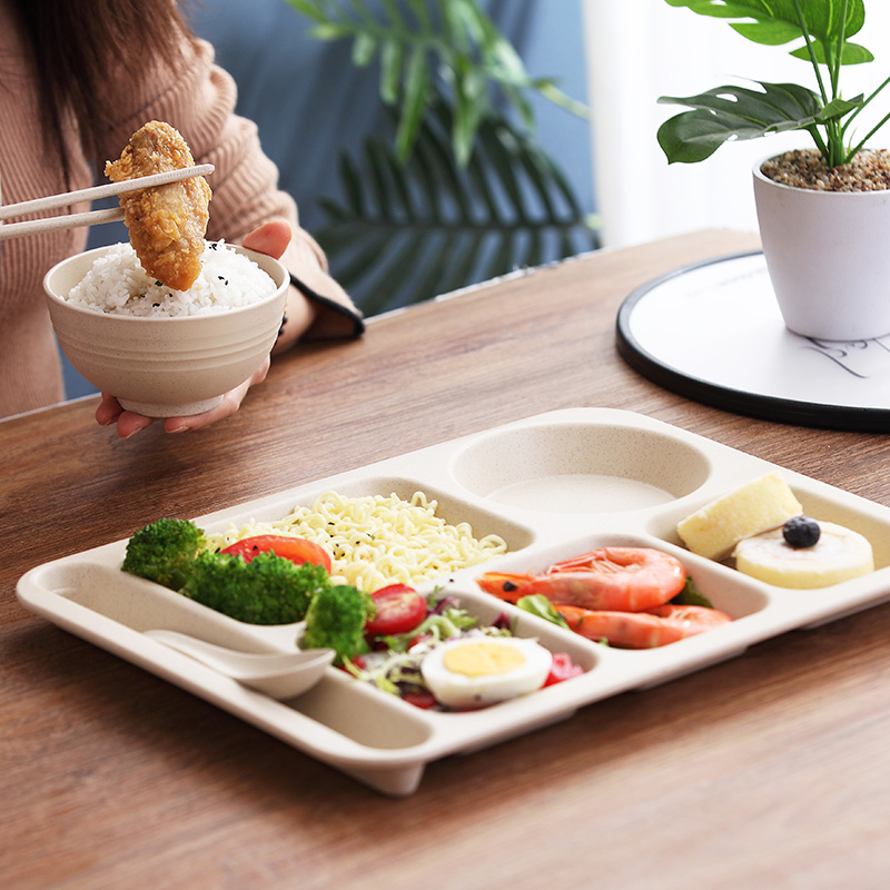 Wheat straw tableware Student meal plate Large capacity canteen Adult meal plate Drop-proof fast food plate Grid plate set