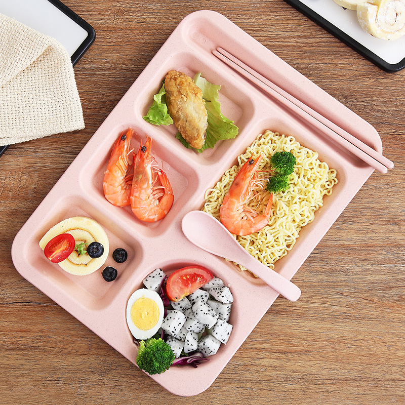 Five-grid plate green (plate spoon chopsticks) Five-grid plate blue (plate spoon chopsticks) Five-grid plate powder (plate spoon chopsticks) Five-grid plate rice (plate spoon chopsticks) Five-grid plate green (plate spoon chopsticks bowl) Five-grid plate