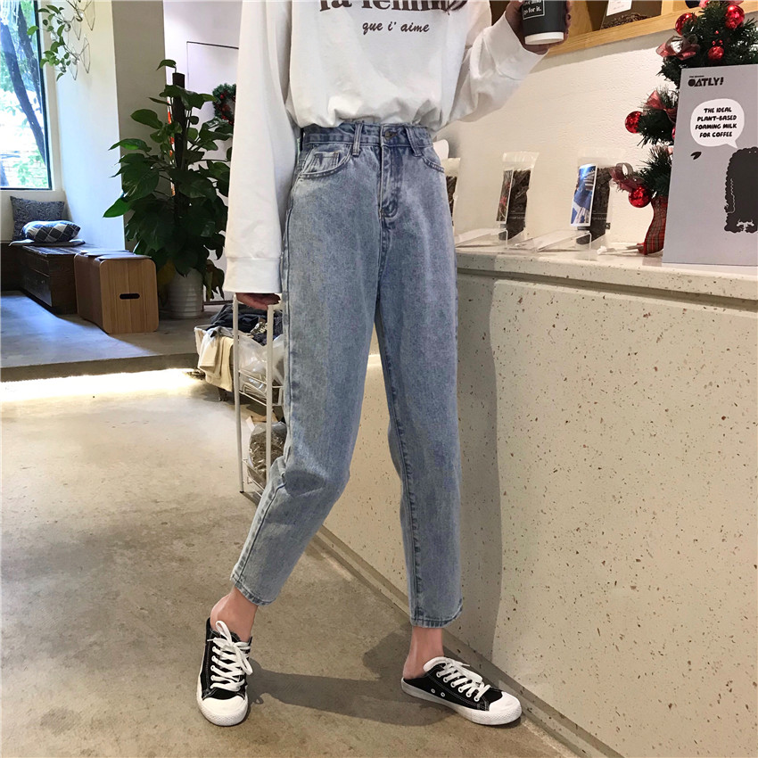 Autumn 2022 new women's loose pants small high waist jeans slim wide leg straight pants dad pants