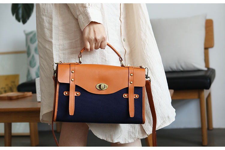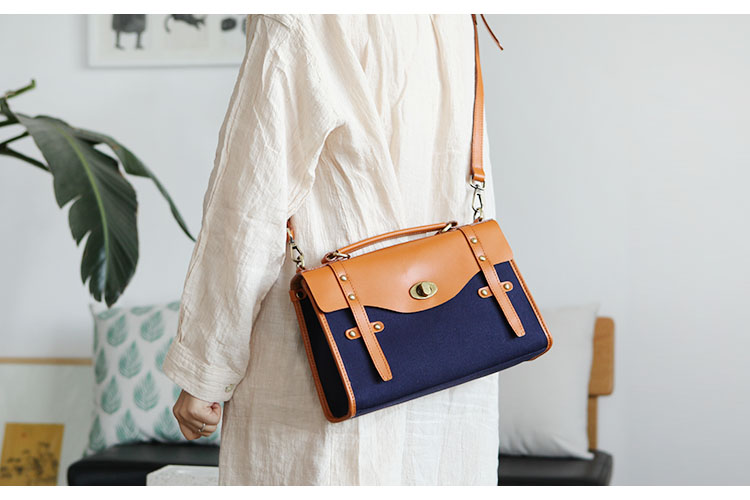 Cloth Valley Forest Women's Bull Leather Handbag Single Shoulder Diagonal Satchel Canvas Bull Leather Collage 100 lap Art Girl Pack B174