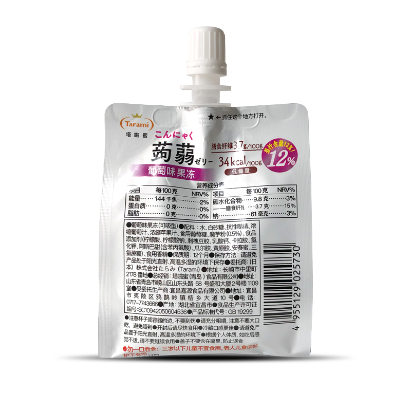 Domestic tarami honey tarami snack konjac konjac juice jelly low card meal light white peach grape 6 bags