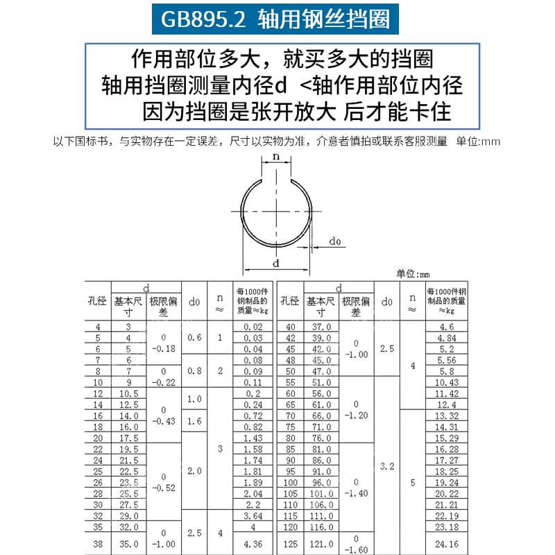 Steel wire C-type clasp for shaft