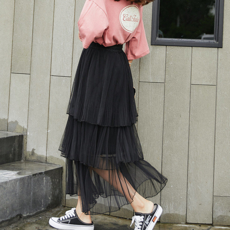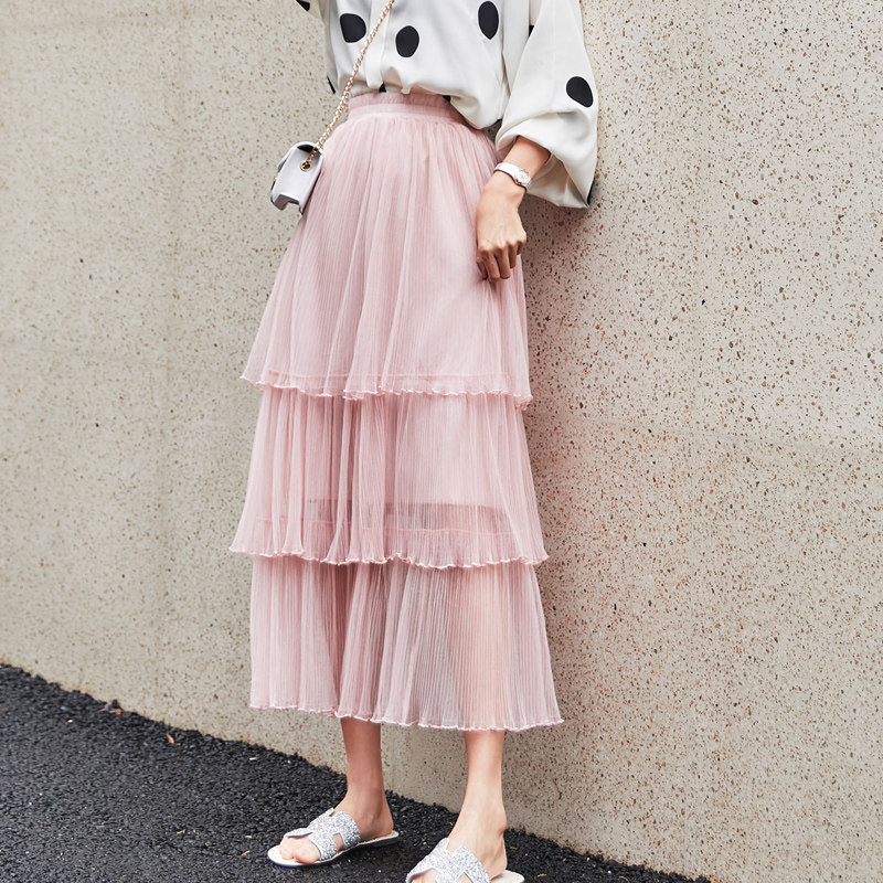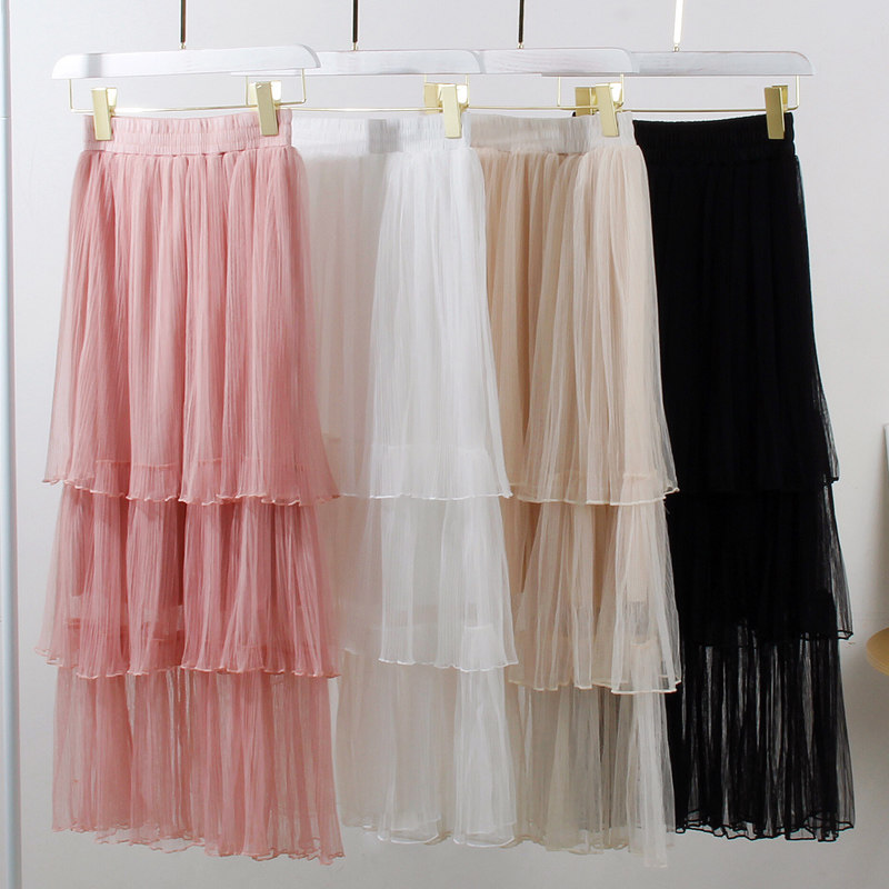 Spring and summer new fairy dress 2021 mesh yarn half body dress with long version of three layers of plexingless dress with high length dresses cake dress