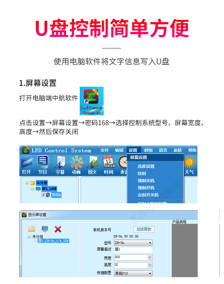 China Airlines ZH-Um control card LED display screen advertising screen Go screen U disc control card