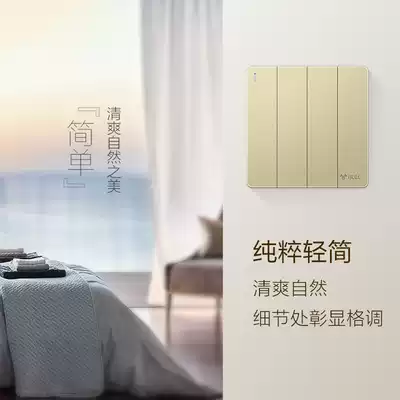 Bull socket flagship wall switch socket four-open double cut four-digit multi-link wall panel household G12 gold