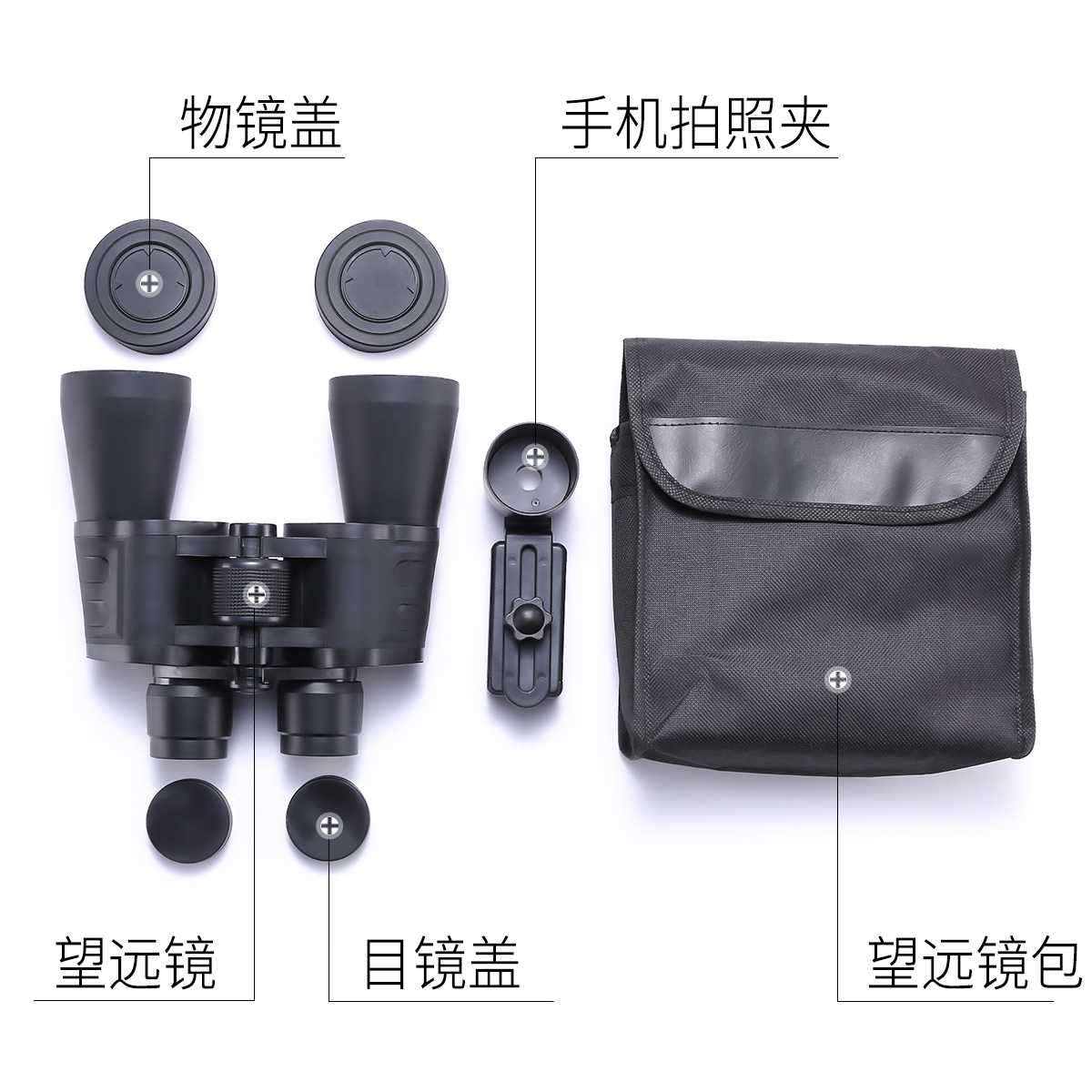 7X35 telescope (delivery containing pack) 8X50 telescope (delivery containing pack) 8X50 telescope containing mobile phone clip compass 10X50 telescope (delivery containing package) 10