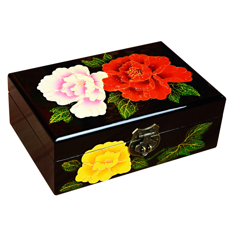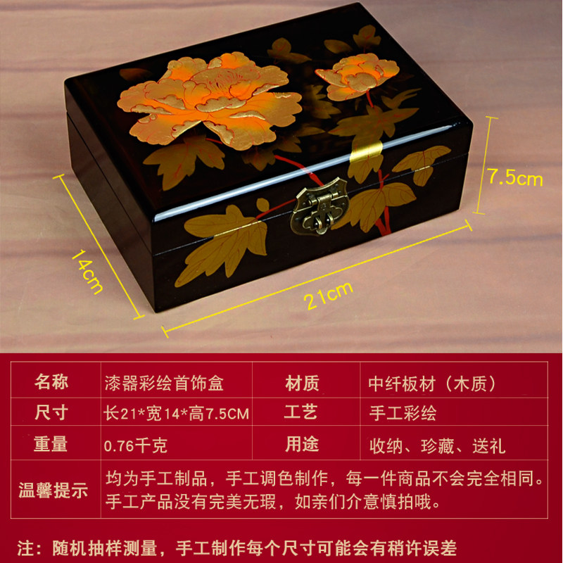 China Wind Pure Handmade Lacquered Ware Pendulum Piece First Accessories Box Drawer Jewelry Containing Box Wedding Dowry Traditional Feature Gift