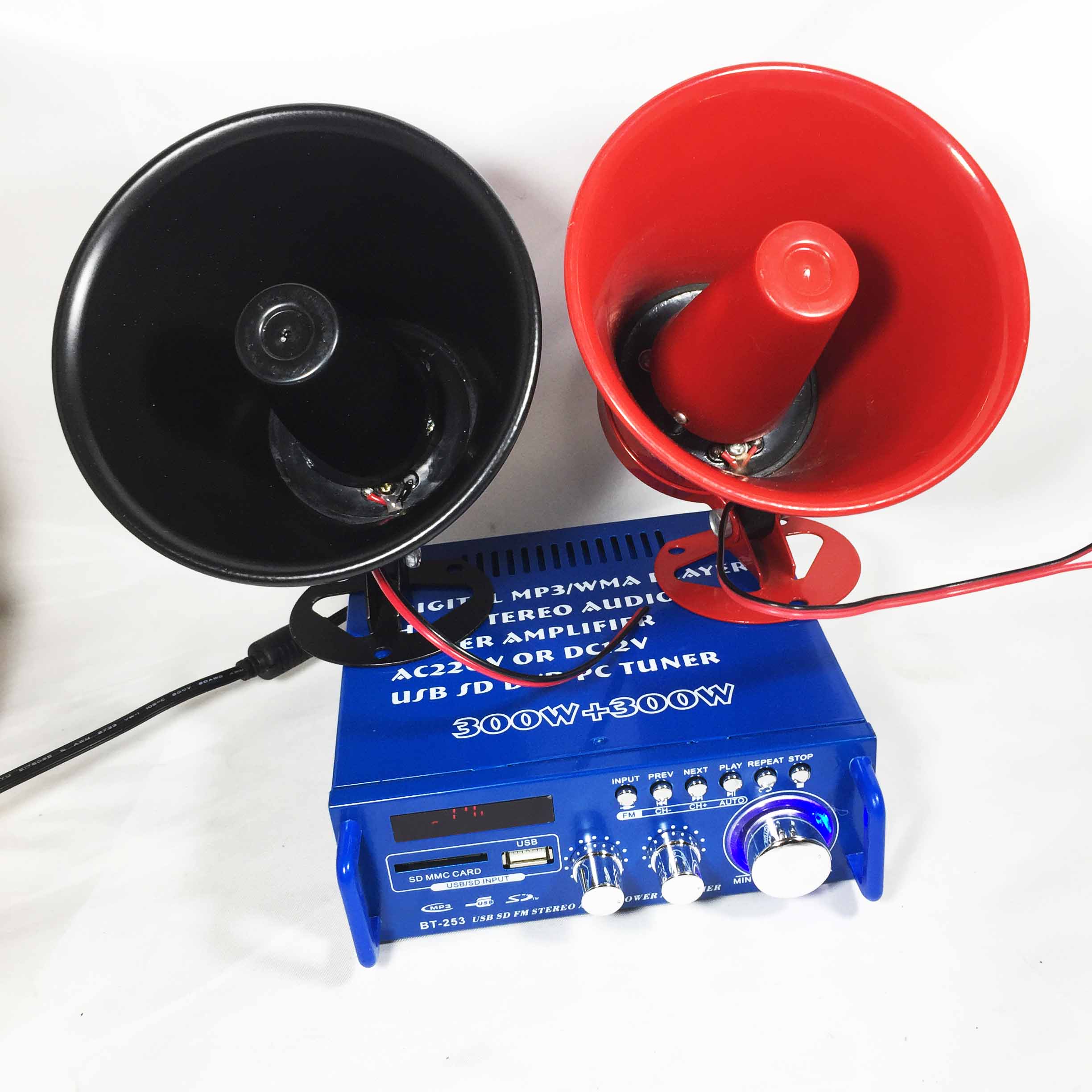 A black horn, a red horn, a black horn, a pair of red horns, a pair of black and red horns, a pair of 253D12V power amplifier horns