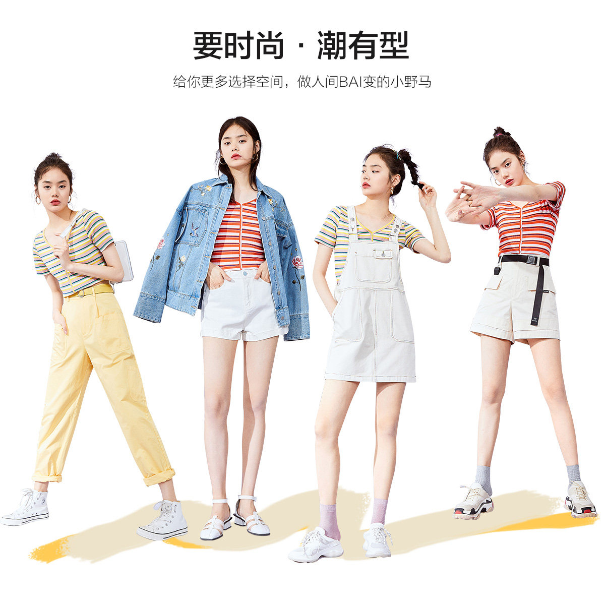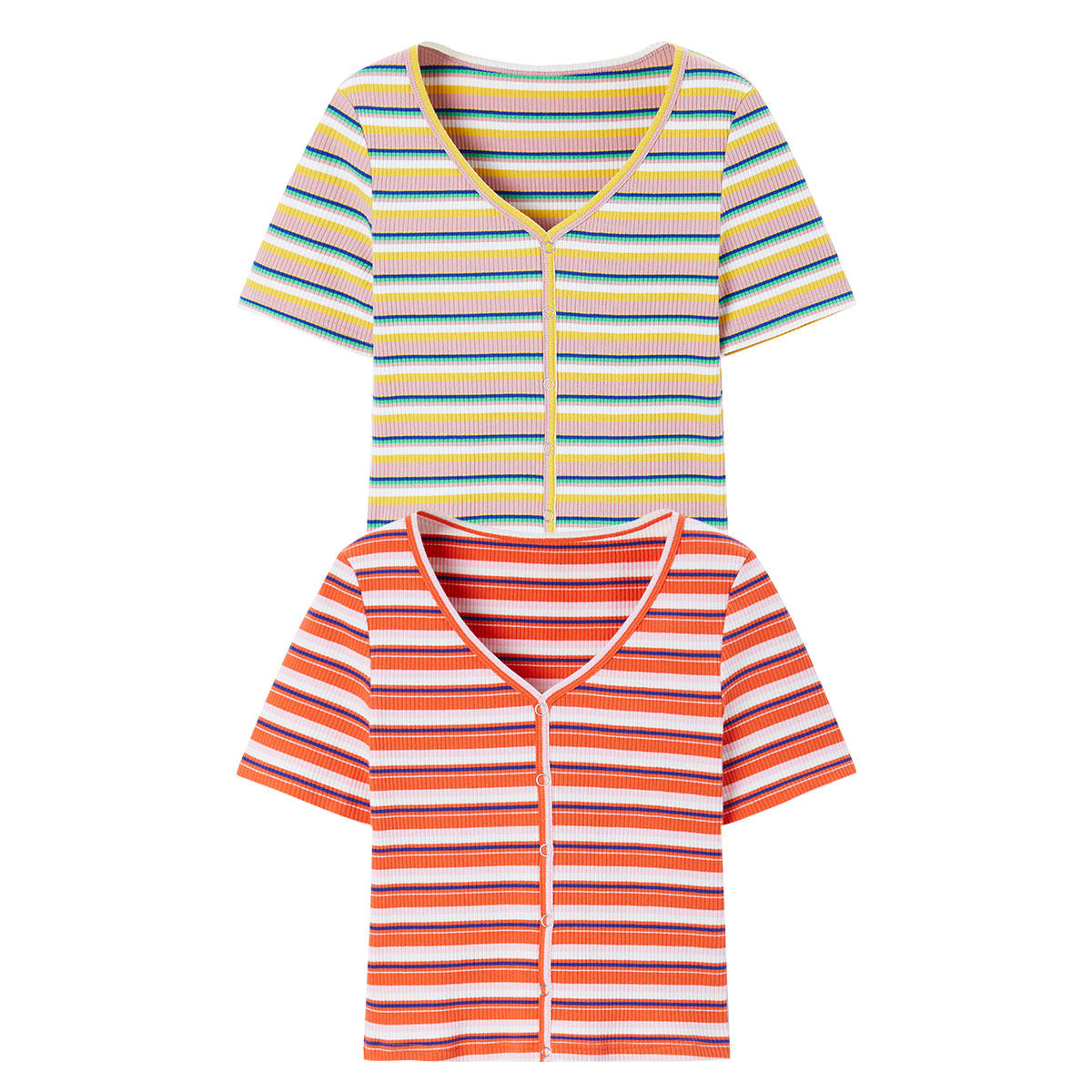 Taiping bird hyuna wind rainbow V-neck slim stripe long-sleeved knitted base shirt 2021 new summer short version t-shirt women