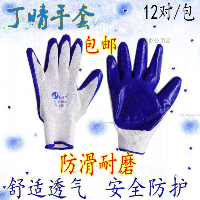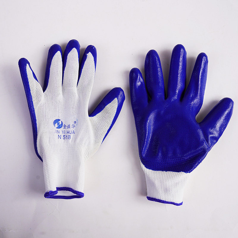 N518 Jin Yihua coated palm nylon nitrile gloves labor insurance work work protection hanging glue dipped non-slip wear-resistant hands