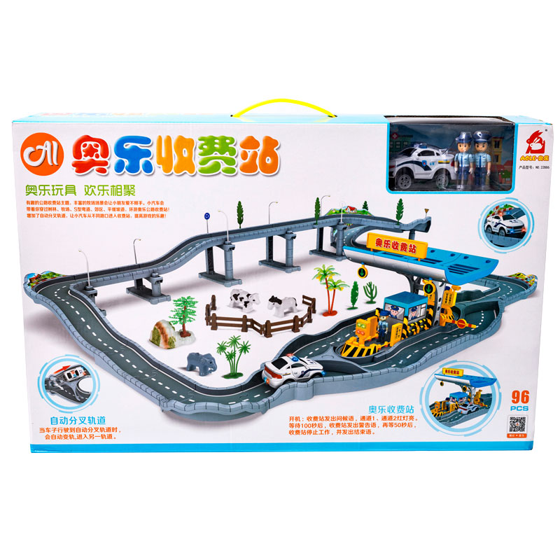 Aole electric simulation highway track automatic rail change toll station Children's gas station car toy