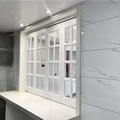 St. Deke's solid wood Plaid glass partition window grille European style simple kitchen dining room push-pull folding window customized