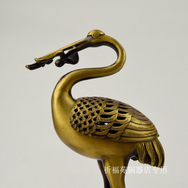 Pure Copper Crane Incense Stove Small Number High Fairy Crane Furnace Taming Special Brass Antique Lavender Oven Book Room Living-room Pendulum cranes