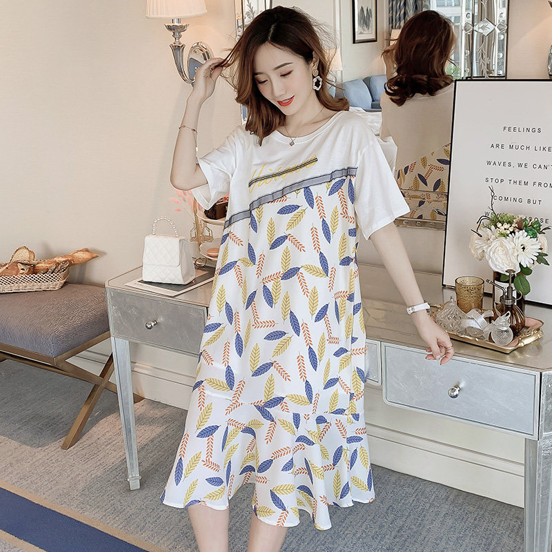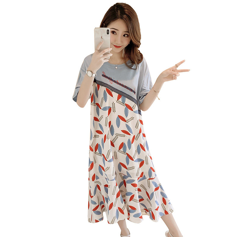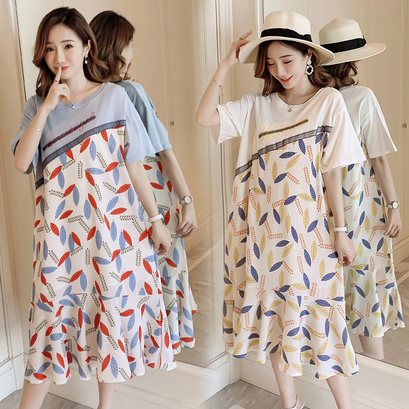 Pregnant women dress summer tide hot mom set out fashion shirt cotton foreign net Red late pregnancy skirt