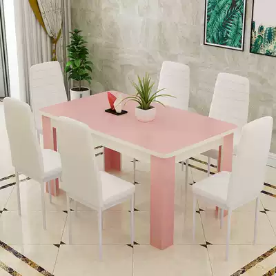 Dining table and chair combination Household small apartment modern simple rectangular dining table Tempered glass dining table saves space