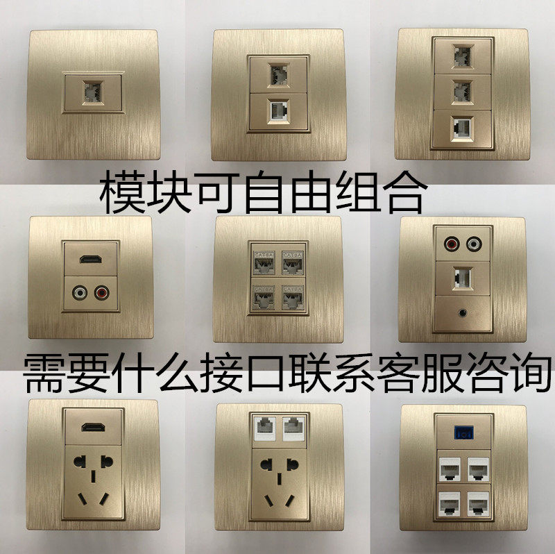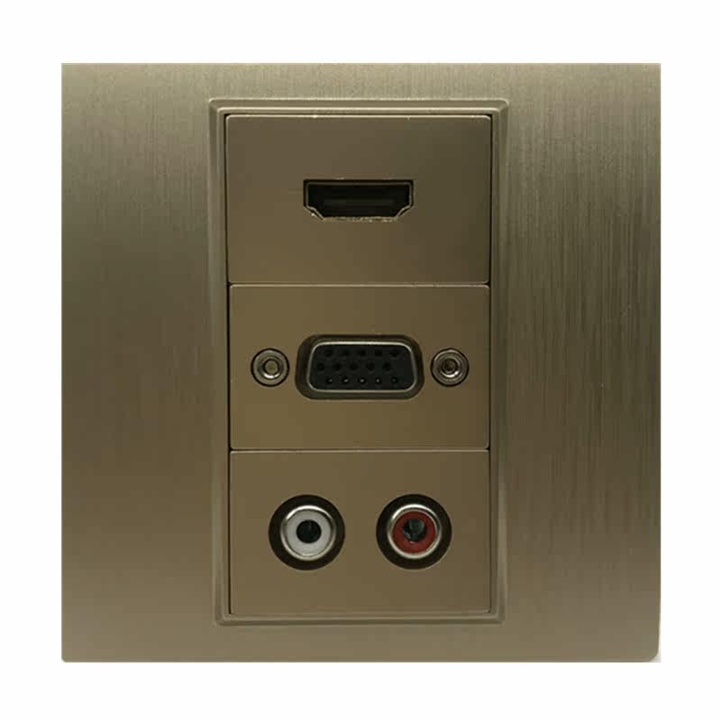 Type 86 wire drawing gold HDMI VGA audio free of welding panel socket wall inserts hdmi high-definition vga mother to mother