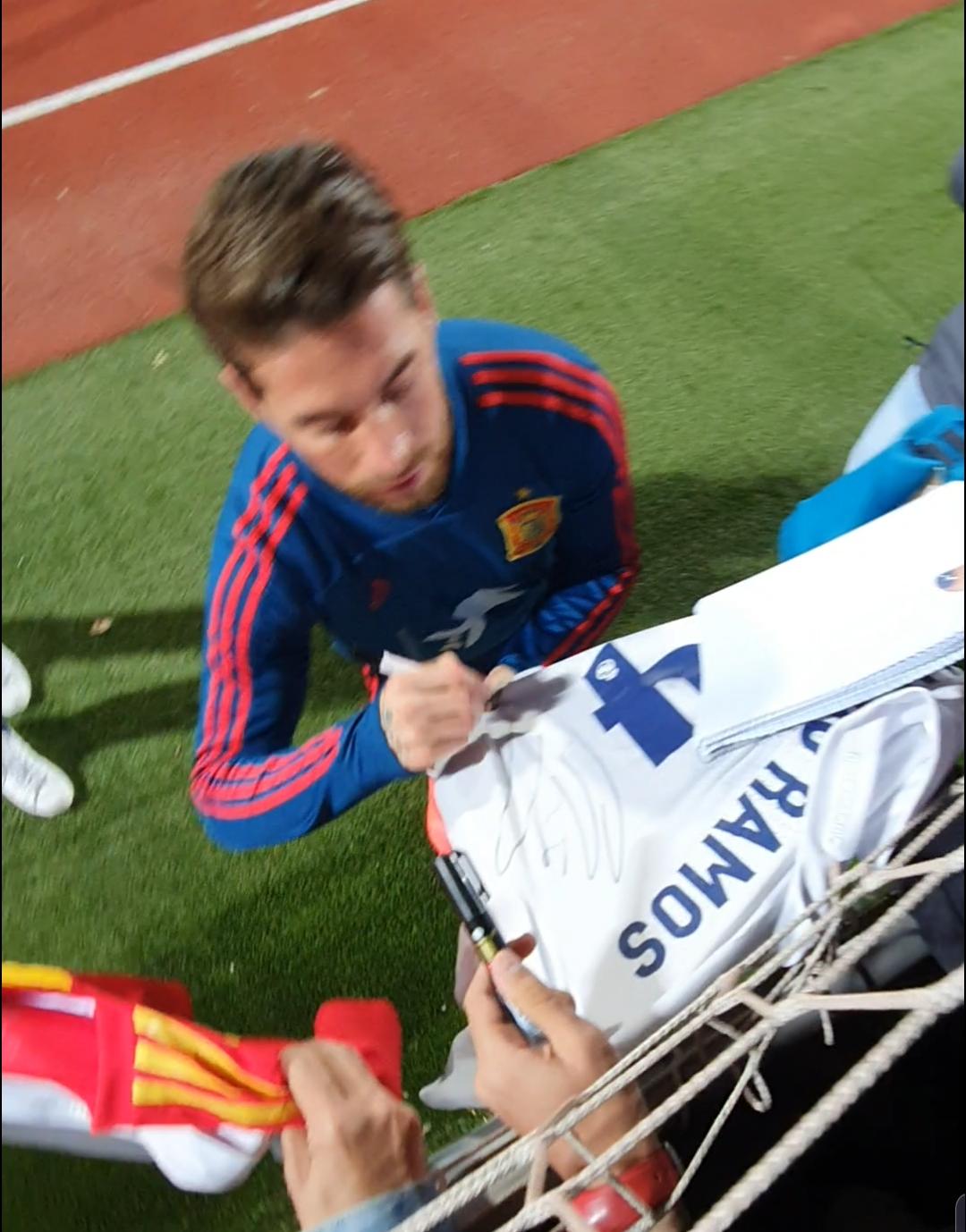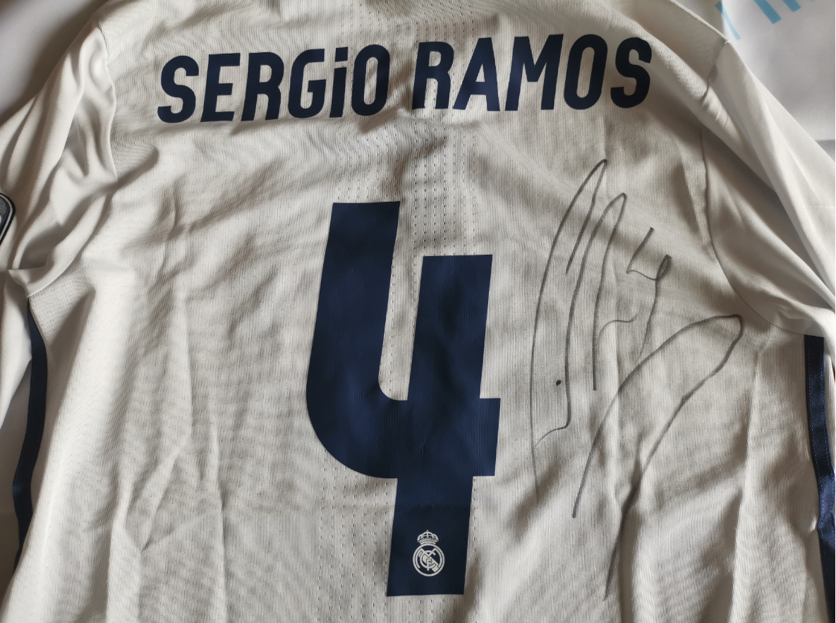 Real Madrid 1617 season long sleeve Ramos locker room signed jersey (with real signature photo)