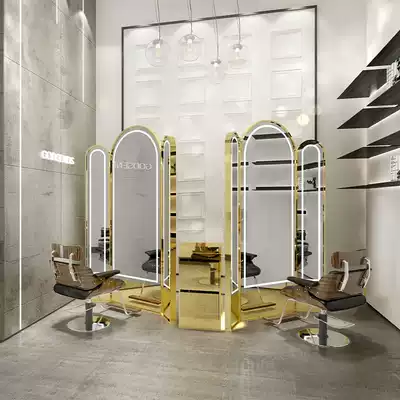 The shop net red mirror hair salon dedicated three-sided floor mirror 3AM hairdressing shop stainless steel hair cutting mirror table against the wall