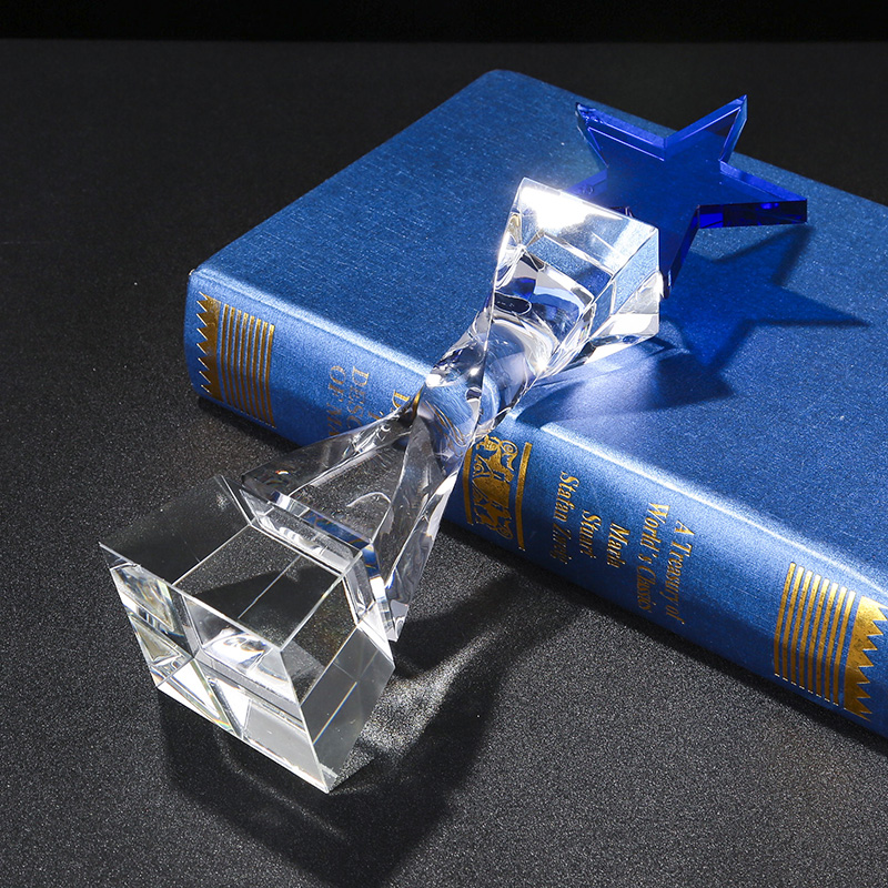 Five-pointed star twist column crystal trophy Custom medal High-end creative enterprise army staff souvenir veterans memento
