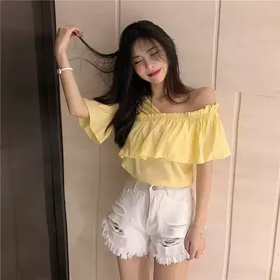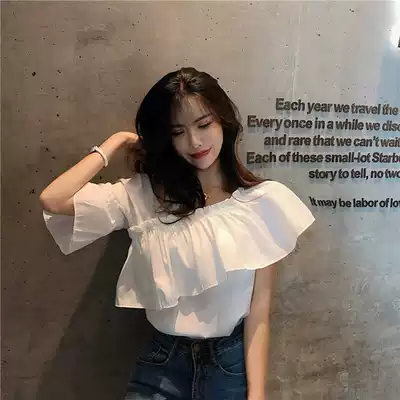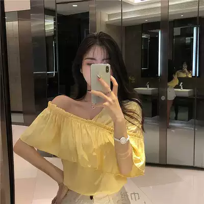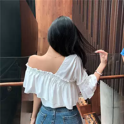 Sexy heart machine irregular cross V-neck collarbone coat female summer new Joker Lotus Lotus off-shoulder foreign pie shirt