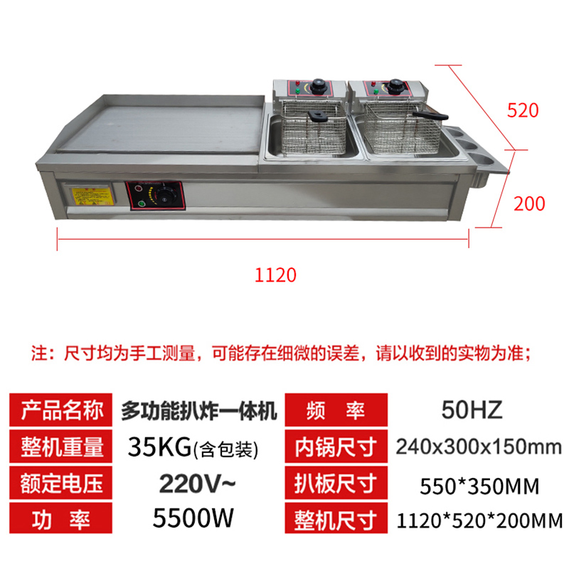 Commercial electric heating onion pancake machine griddle fryer All teppanyaki squid frying steak with fryer equipment