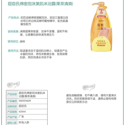 Watsons shower gel dense foam skin shower gel (fruit extract refreshing) 650ml white peach and tangerine flavor