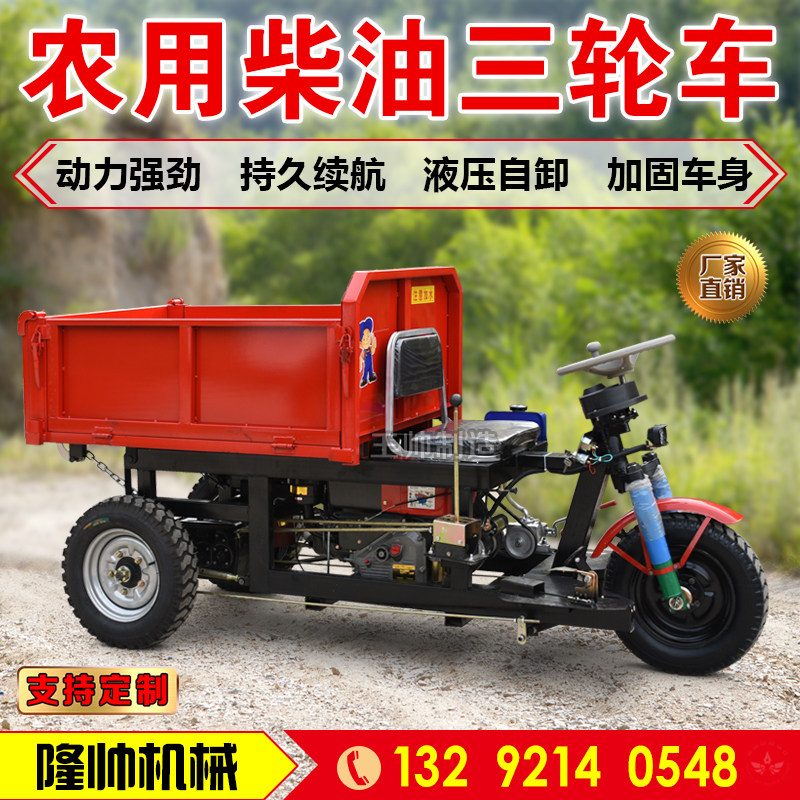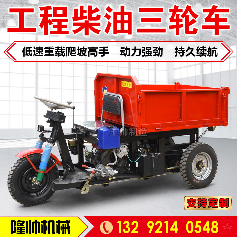 Construction site engineering diesel tricycle breeding agricultural transport vehicle climbing load king hydraulic dump truck