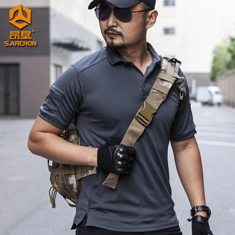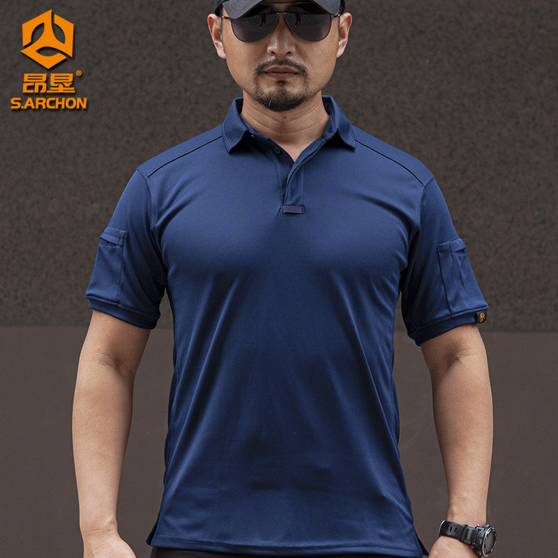 Instructor Tactical Summer Outdoor Speed Dry T-shirt Male turnover Short sleeves Loose Arms semi-cuff Laurun Horse polo POLO