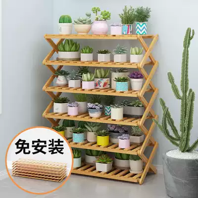 Balcony flower shelf shelf multi-layer solid wood flowerpot simple living room interior decoration multi-meat Gold Ge flower shelf special offer
