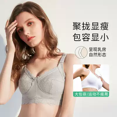 Ultra-thin underwear Women's Big chest small artifact without steel ring bra thin anti-sagging gathering large size full cup bra