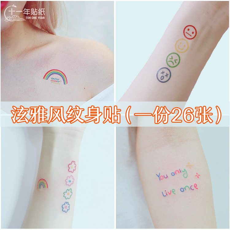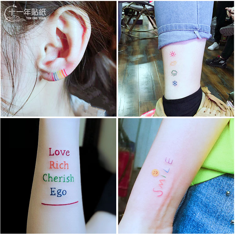 Dazzling Elegant Wind Tattoo Sticker Waterproof South Korea Smiley Face Rainbow Line English Little Fresh And Cute Tattoo Sticker Wind