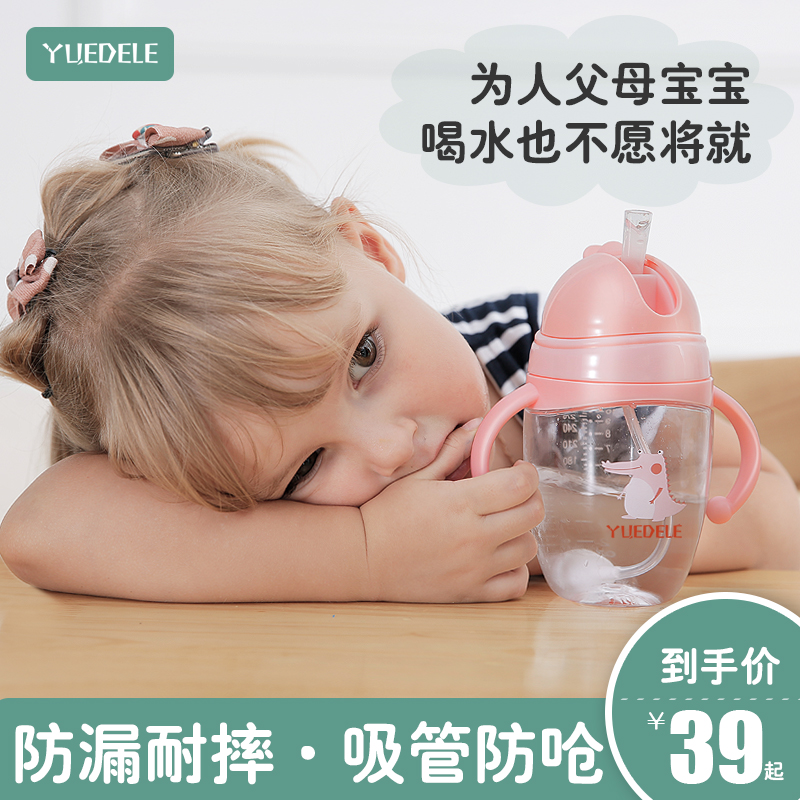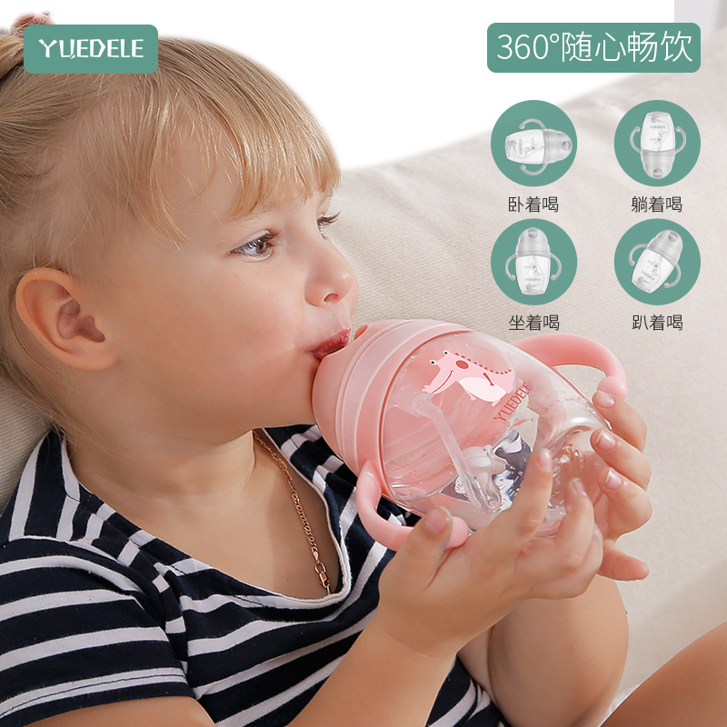 Baby drinking cup Baby straw cup Children's kindergarten anti-choking anti-fall with handle gravity ball drinking milk cup